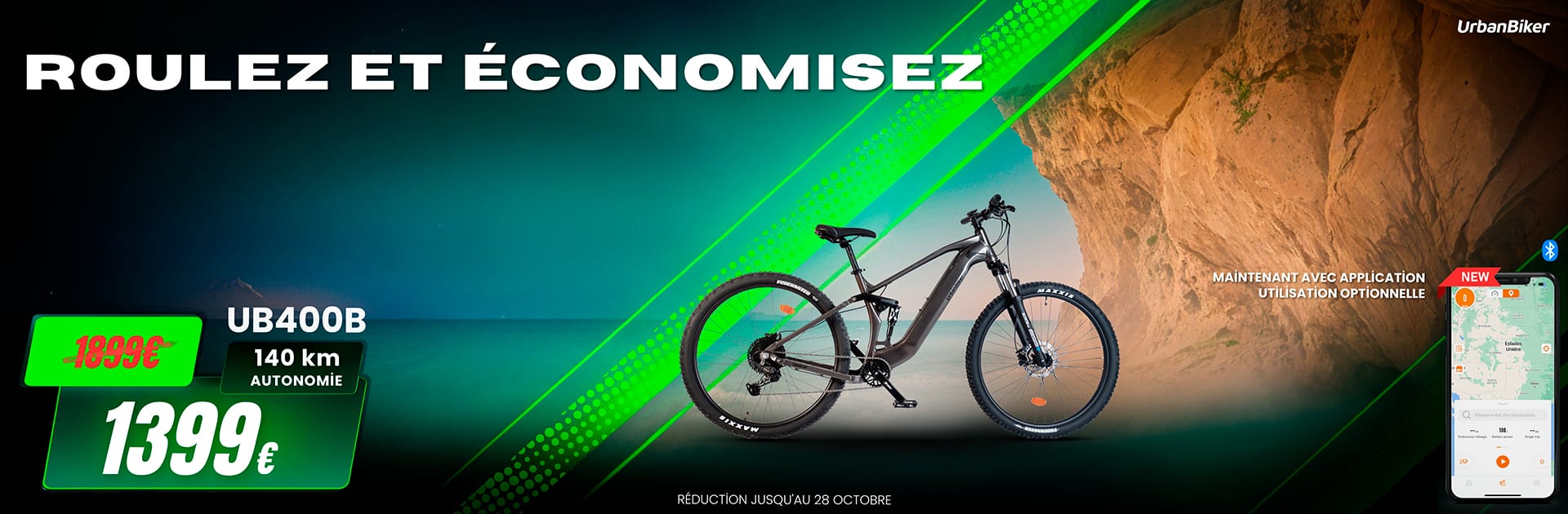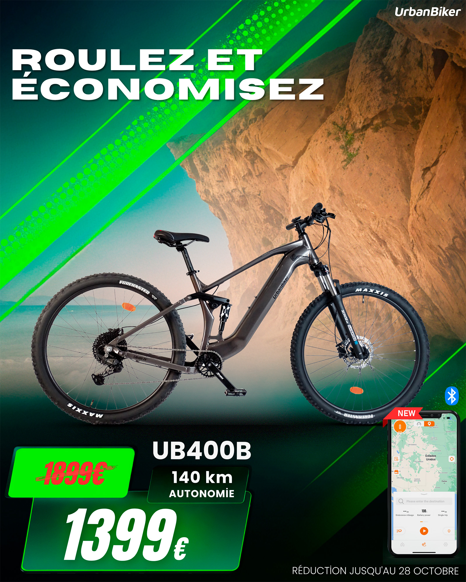 UrbanBiker UB400B | VTT Électrique Tout Suspendu | Autonomie jusqu’à 140 km