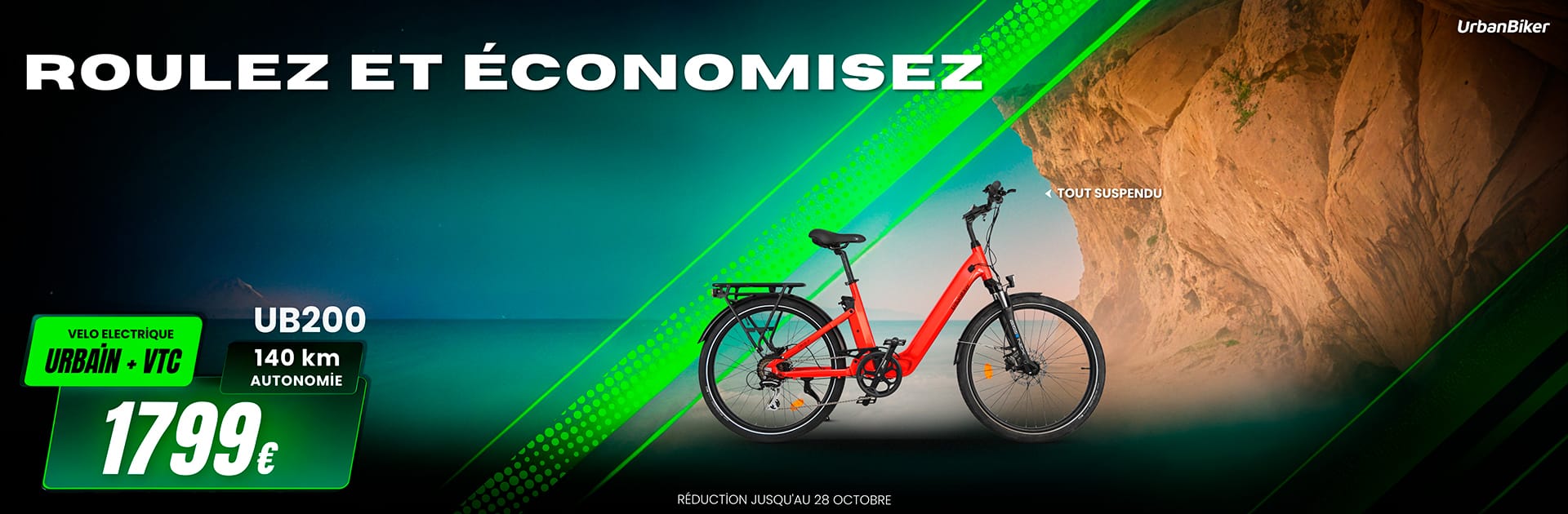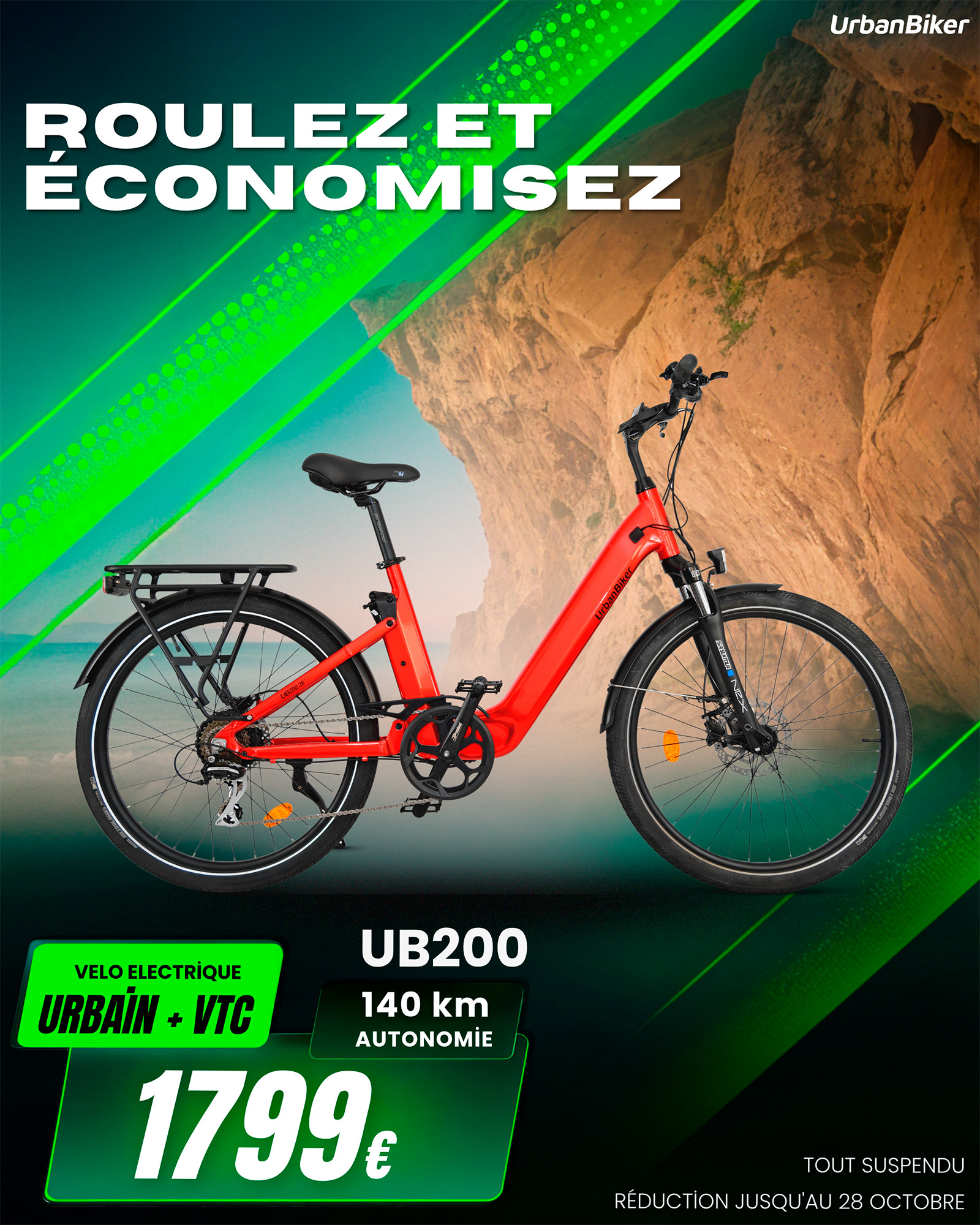 UrbanBiker UB200 | VAE de ville Tout Suspendu | Autonomie jusqu’à 140 km